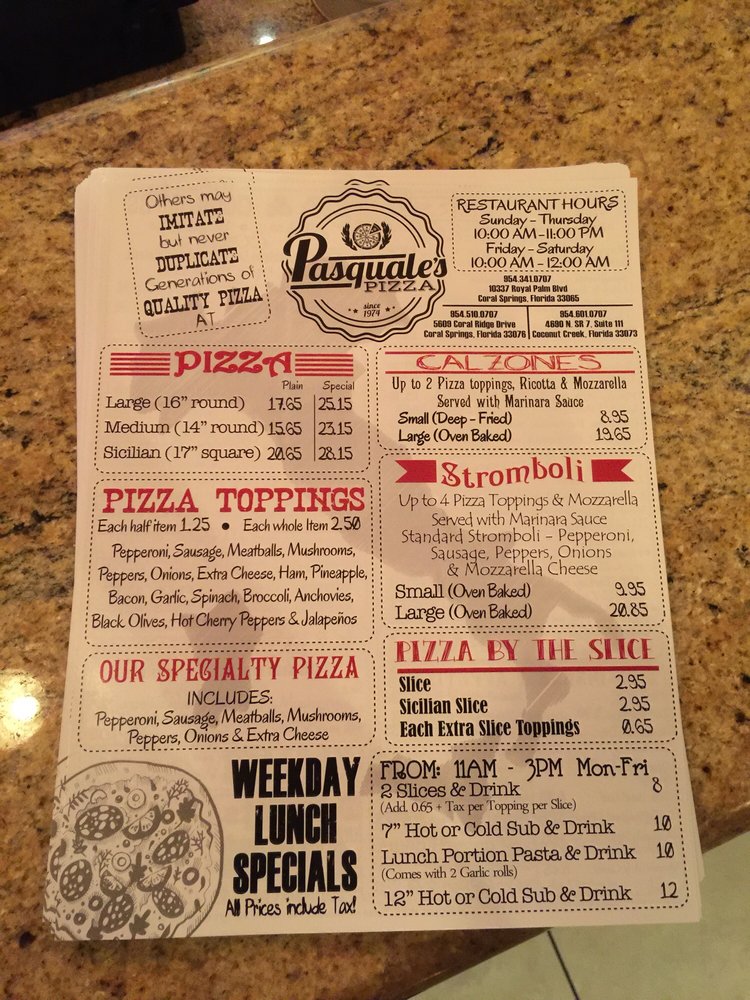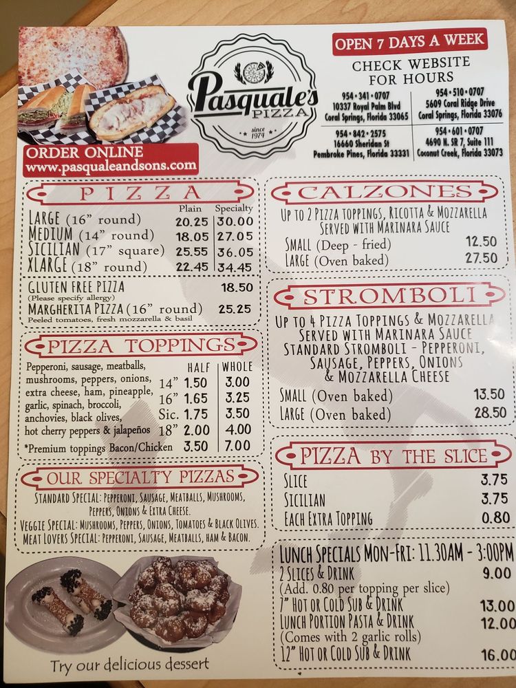 Welcome to the delightful world of Pasquale & Sons Pizza Company, where authentic Italian pizza meets an inviting atmosphere in Coral Springs, Florida. Nestled at 5609 Coral Ridge Dr, this pizzeria is more than just a dining spot; it's a culinary experience that transports you straight to the streets of New York City.
